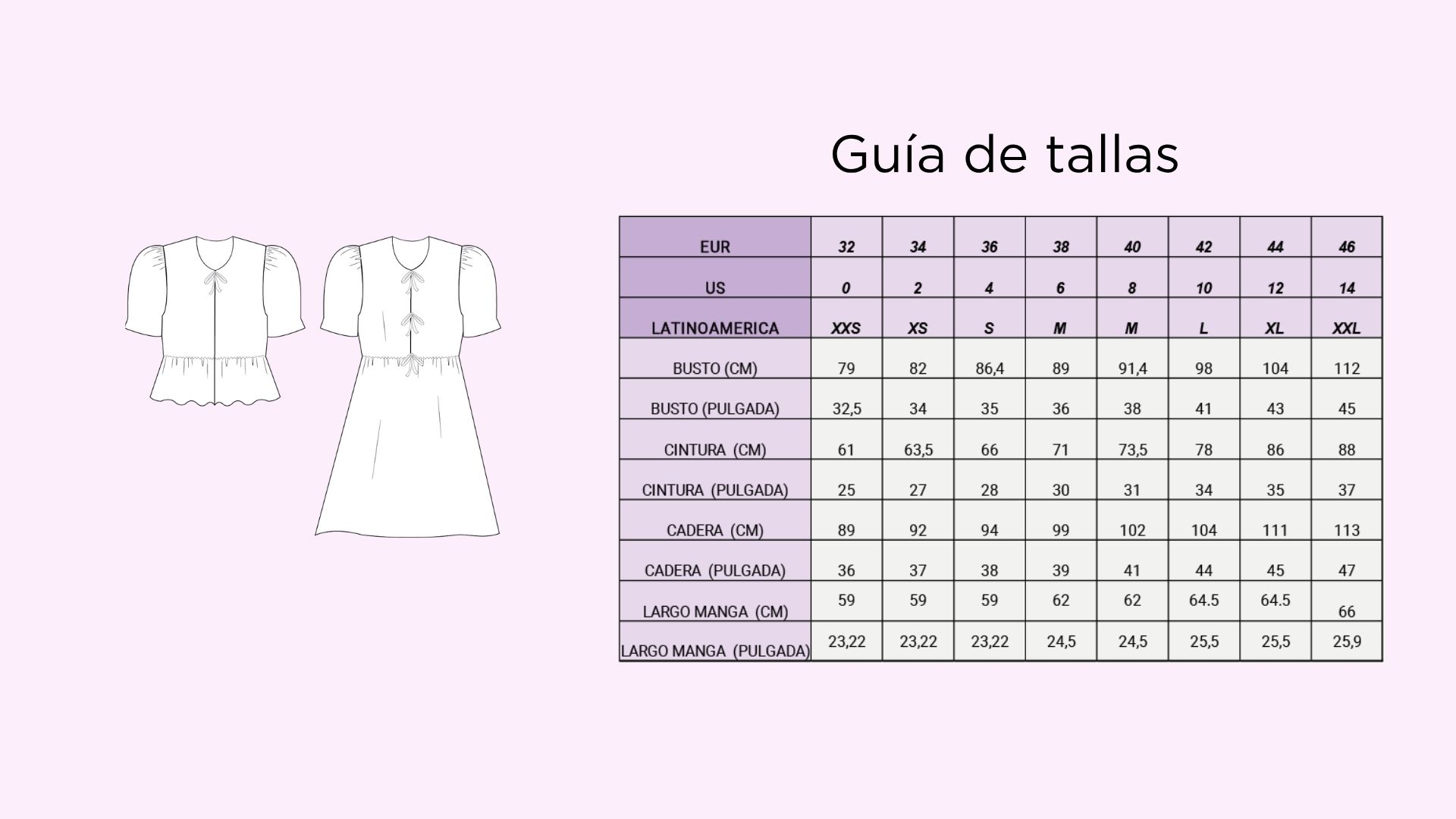 Para su confección se sugiere en tela rígida, como: algodón, vichy, chambray o popelina. Y las tallas son estándar, revisar medidas antes de elegir el patrón que se adapta mejor.